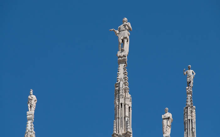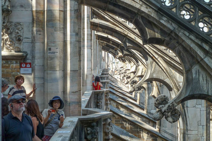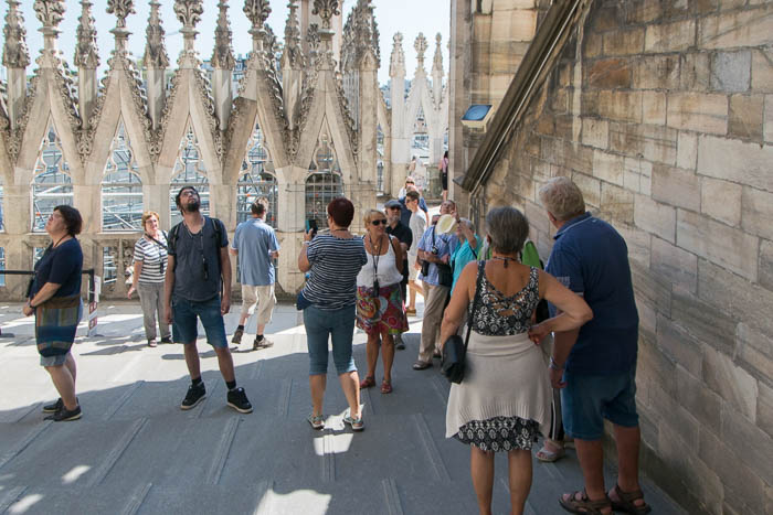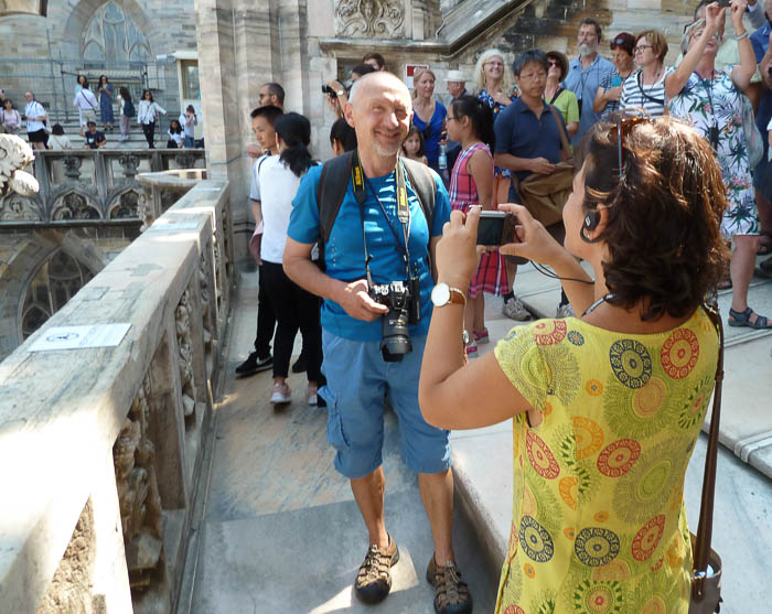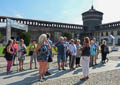 Am zweiten Tag starteten wir mit unserer Reiseleiterin zu einer Stadtrundfahrt, um einen ersten Eindruck von "Milano" zu gewinnen. Nach dem Besuch des grandiosen Castello Sforzesco, einem imposanten Renaissancebau, wartete dann schon ein echtes Highlight auf die Besucher: Die Dachterrassen des Mailänder Doms. Ein großartiger Ausblick auf die Stadt und nahen Alpen entlohnte für das längere Anstehen am Fahrstuhl. Angesichts der zahllosen Spitzen und Türmchen mit den feinziselierten Marmorskulpturen versteht man auch, warum für so manchen kunstsinnigen Betrachter diese Kirche die schönste der Welt ist. Der Nachmittag stand dann zur freien Verfügung. Viele Zeiler genossen bei einem Kaffee oder Glas Bier (0,4 ltr zu 9 € !) den herrlichen Sonnenschein, andere wiederum bummelten durch die nahe Einkaufspassage oder durch die malerischen Gassen der Stadt.