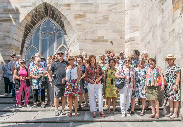 Zum diesjährigen Ausflug des Bürgervereins Grabengärten stand die zweitgrößte Stadt Italiens, Mailand, auf dem Viertagesprogramm, das Vorstand Günter Schuster geplant hatte. Pünktlich um 5 Uhr in der Früh am Feiertag Mariä Himmelfahrt starteten 44 Reiseteilnehmer, um die norditalienische Metropole zu besuchen. Über Bregenz und Chur, der Via-Mala-Schlucht entlang, erreichte die Reisegruppe nach einem längeren Aufenthalt am Scheitelpunkt des San Bernadino Passes die Stadt Como am südlichen Ende des gleichnamigen Sees. Dort wartete schon unsere mit enormen Wissen ausgestattete italienische Fremdenführerin, die uns die nächsten Tage begleiten würde. Como ist bekannt für seine bedeutende Seidenindustrie. Nach einer gut einstündigen Führung in dieser prächtig gelegenen Stadt mit vielen hübschen Villen und Palästen ging es weiter mit dem Bus nach Mailand, wo man im zentral gelegenen Hotel die Zimmer bezog und ein gemeinsames Abendessen einnahm.