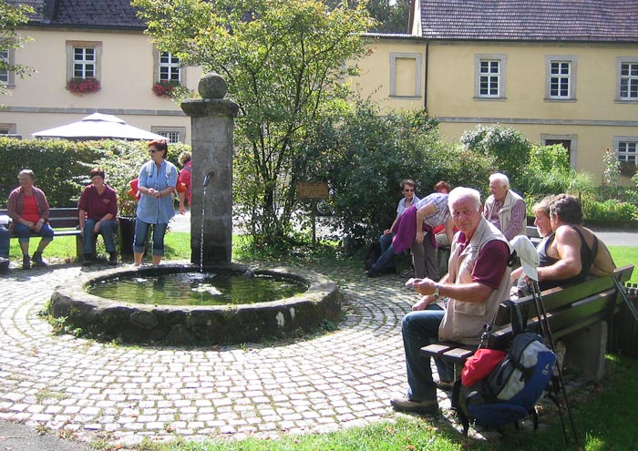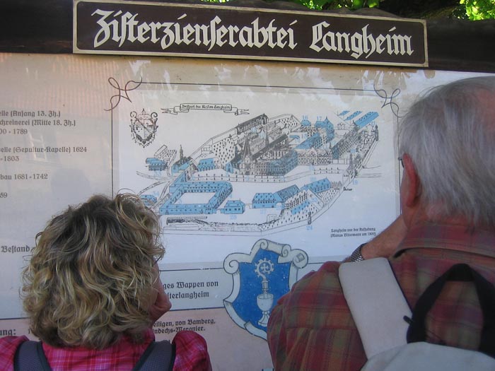 In diesem Jahr wurde die Wanderung in Oberfranken durchgeführt. Auf unserer Anreise mit City Bus und Privat-PKW begrüßte uns zuerst der Staffelberg. Bei herrlichem Sonnenschein boten die steil abfallenden Felsen einen tollen Anblick. Dann erblickten wir links auf der Höhe das Kloster Banz und auf der rechten Talseite die Basilika Vierzehnheiligen. Diese Anblicke im Gottesgarten am Obermain sind schon von besonderer Schönheit. Bald darauf war der Ausgangspunkt unserer Wanderung, das frühere Kloster Langheim erreicht. Langheim - Lichtenfels - Mistelfeld - Langheim, das war der Rundweg den wir uns ausgesucht hatten.